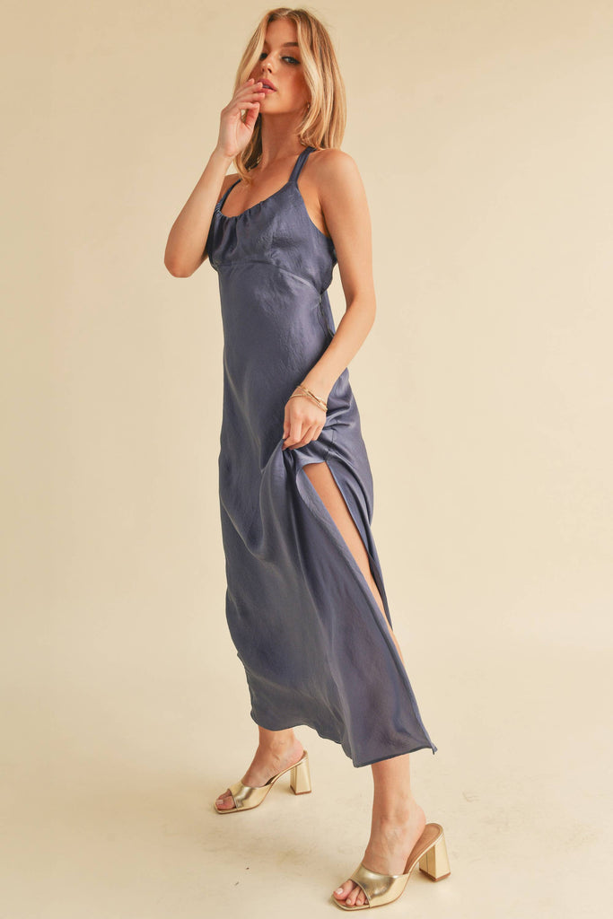 Elegant Courtnee Dress flaunts a figure-flattering silhouette crafted from a light and smooth fabric that is lightweight, stiff yet soft and feels delicate.