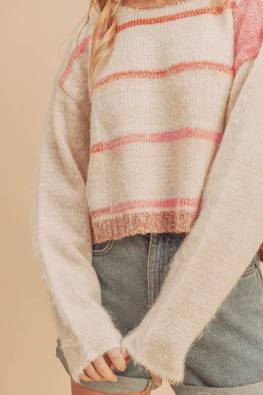 Our Mona Sweater makes a serious impact based on the stripe and colorblock alone. She's slightly cropped length knitted in the softest yarn.